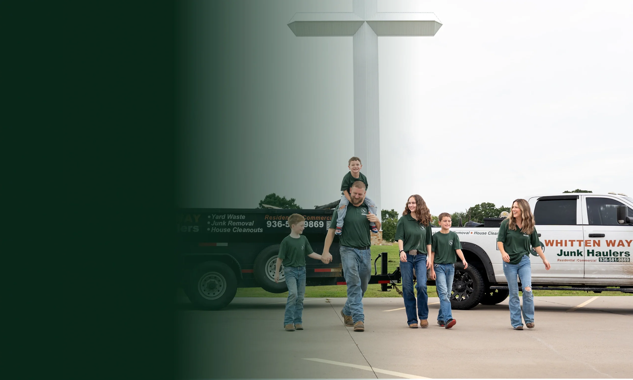Hey there! I’m Jerrett, and along with my wife, Kelsey, we’re the proud owners of Whitten Way Junk Haulers. We’re a veteran-owned, family-operated junk removal company, and we’ve been serving Huntsville, TX, and the surrounding areas since we founded Whitten Way in April 2025. Our goal from day one was to create a company that not only provides efficient, full-service junk removal but also genuinely cares for our community.
